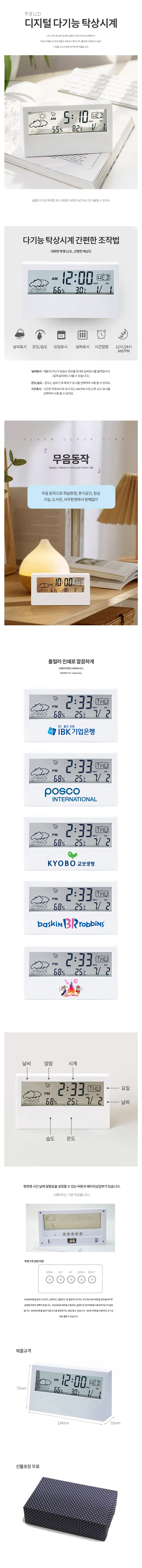 다기능 투명 LCD 탁상시계 - 컬러인쇄+선물포장 포함 #와이즈기프트